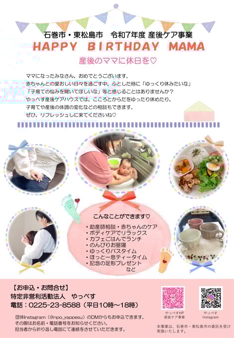 やっぺす産後ケアハウスでは、こころとからだをゆったり休めたり、