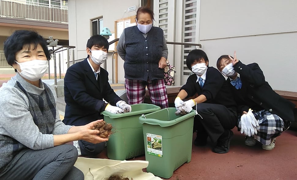 毎年春に山の芋の植えて11月に収穫し、兵庫県立篠山東雲高校の皆さんと交流してきました。今年は出来るか?と不安でしたが、復興住宅のみなさんに受け入れてもらえて実施することができました。年々収穫するお芋が大きくなっていくようでうれしいです。