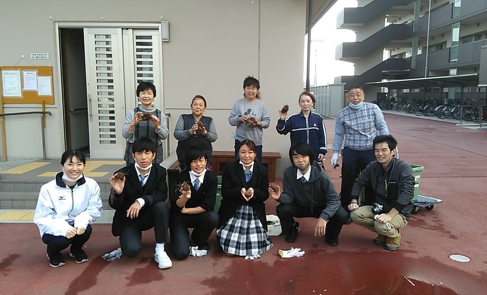 あけぼの北復興住宅ではコロナの影響で集会所の使用を自粛しているので、高校生の皆さんと収穫というわけにはいきませんでしたが、収穫してまいりました。