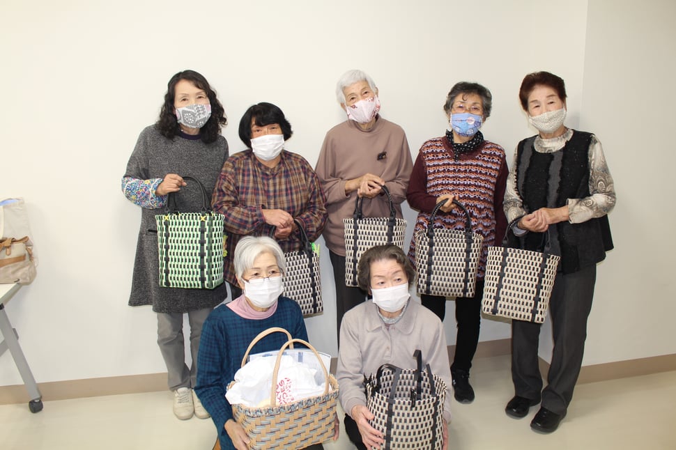 11月6日新西前沼第一復興住宅で紙ひもでかご作り、11月12日寿楽荘で紙ひも教室、を開催しました。