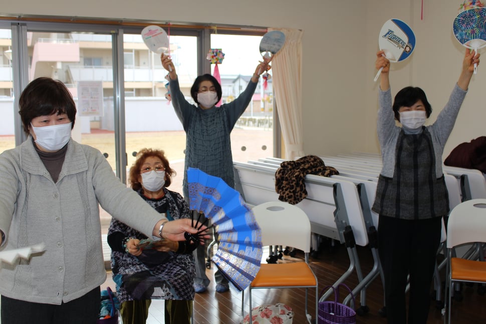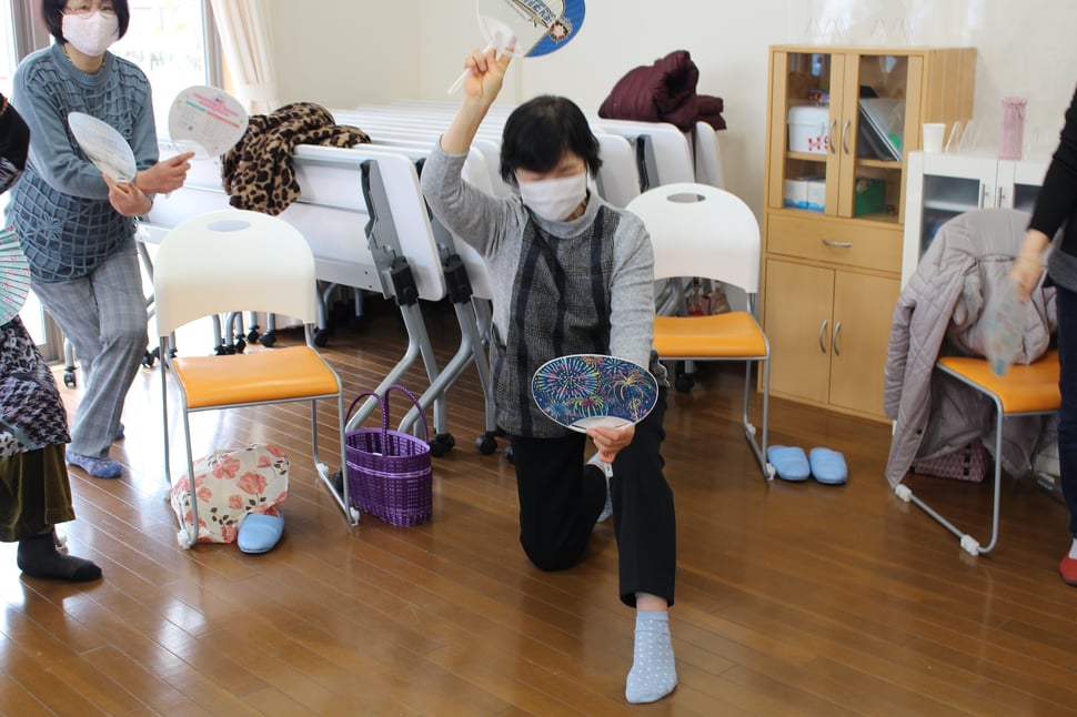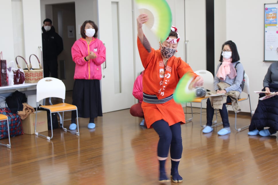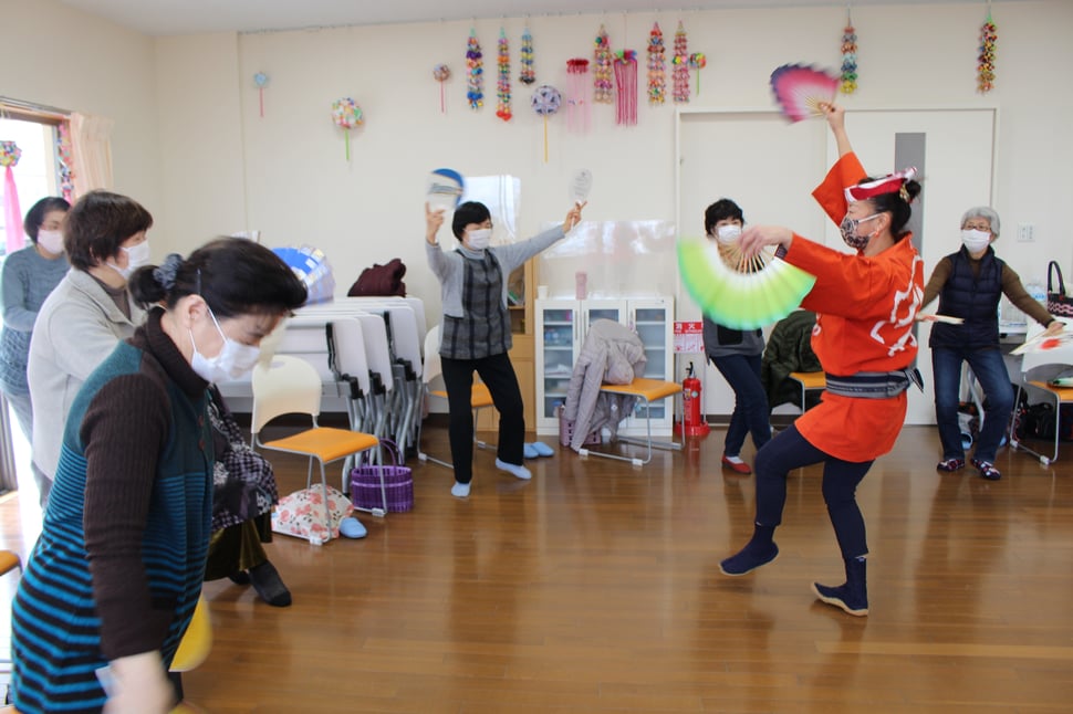 うっちゃん先生は介護予防体操や、おひとりで暮らされている方を訪問しお話を聴いたりするお仕事をなさっていて、東松島市のほうでは雀踊りをご指導なさったことがあります。