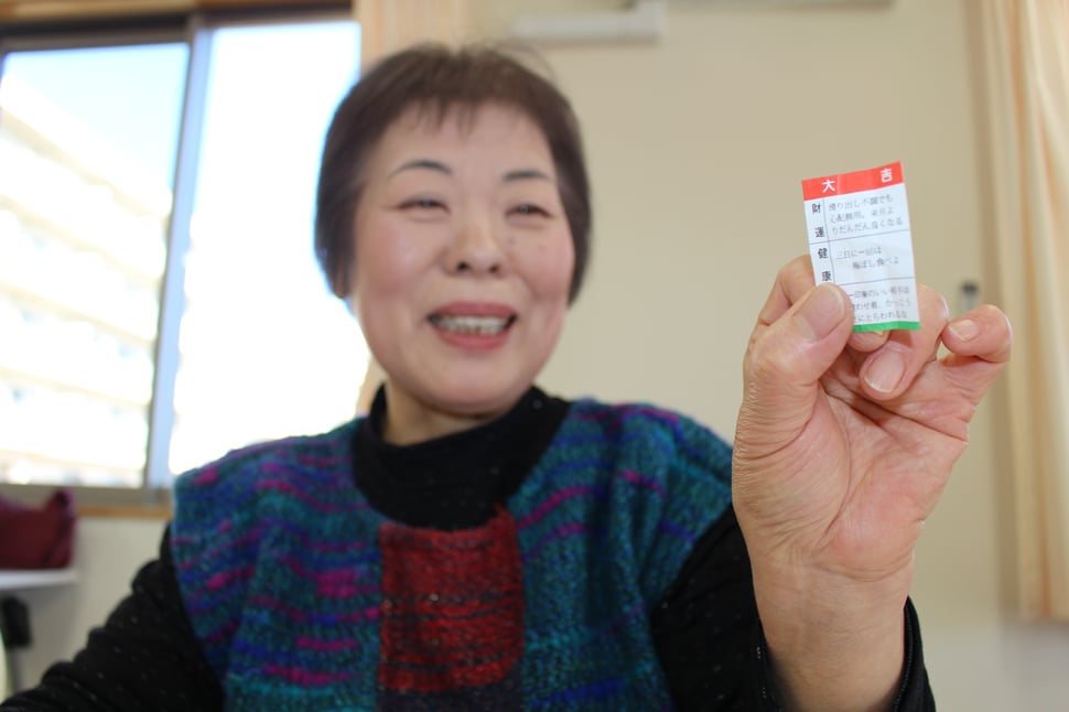 中におみくじが入っているおせんべいを持ってきてくれた方もいました。