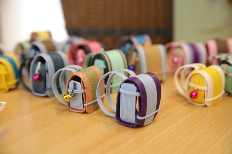 紙ひもの講師高橋さんと菊田さんが作ってきてくださったランドセルとストラップは名取のみなさんにお土産にとのこと。