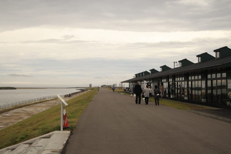 12時になりました。集会所の近くの「閖上かわまちてらす」でお昼♡