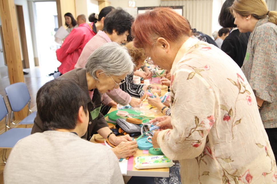 当初、「紙ひもで小物づくり」で交流しようか?「手芸にしようか?」と考えていたところ