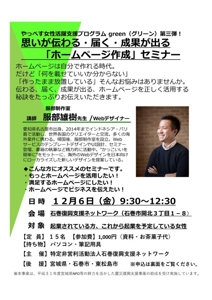 やっぺす!女性活躍支援プログラム”green”事業では