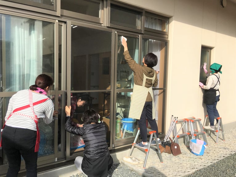 窓や網戸の清掃を希望される方たちが多くいらっしゃいました。住民さんのお部屋の清掃のほか、