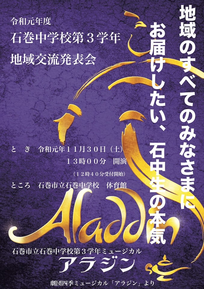 「参観日にあわせて、劇団四季の指導を受け、 文化祭で演じたアラジンを