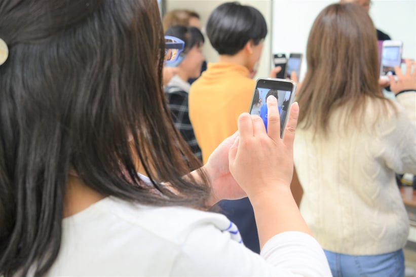 デジタルカメラとスマートフォンチームに分かれてカメラを実際に使っての実践です!