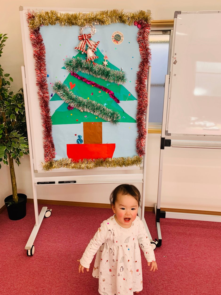 クリスマスが近かったので模造紙でクリスマスツリーを作りました。