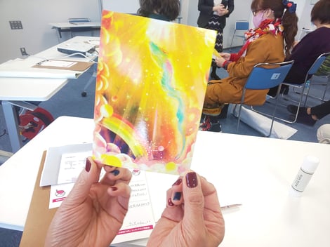 先生からのご提案で、発表を聞いた後は受講生同士応援メッセージを紙に書いて