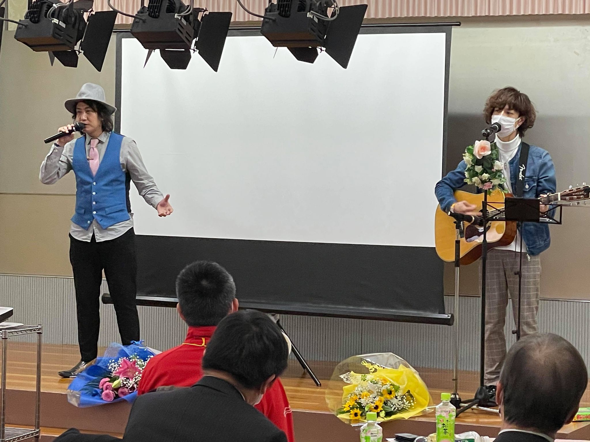 今日はそのお二人が会場に来てくださりミニライブを開催してくださいました。「Bloomin'(ブルーミン)~笑顔の花咲いた~」「プロムナード」などを歌ってくださり会場は大いに盛り上がりました。