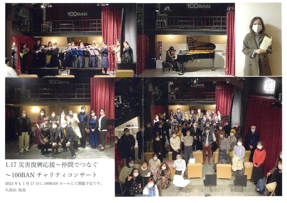 1.17災害復興応援~仲間でつなぐ~100BANチャリティコンサートを開催されていらっしゃいます。