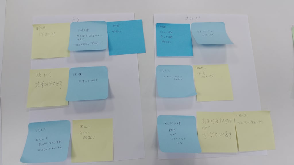 同じ悩みもあれば、私はこの家事のここが好きなど、盛り上がる場面も。