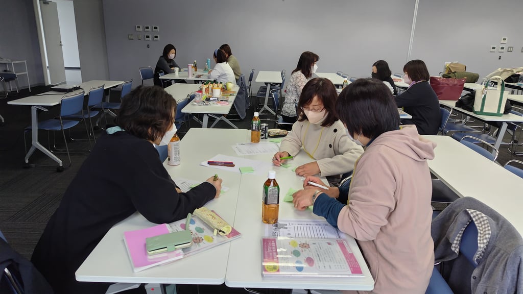 後半は、ポジティブ心理学の手法を取り入れ、「今ある幸せ」について考えるワークを行いながら、ポジティブ感情をもつことが日々の生活を送るうえで重要であることを学び、いろいろな気づきがあったそうです。