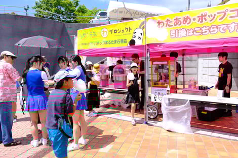 来場した子どもたちには、パチンコまるたま石巻店様から綿あめとポップコーンのプレゼントも!