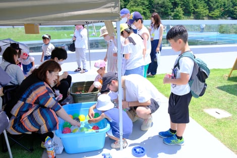 石巻圏域子ども食堂連絡会議のブースでは、地域の子ども食堂や制服バンクの取組みを紹介しながら、水ヨーヨーや輪投げ等の縁日コーナーを開いていました。