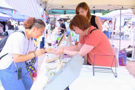各出店ブースでは、様々な美味しいものやハンドメイド作品の販売や、マッサージなどの癒しの提供などが行われておりました。