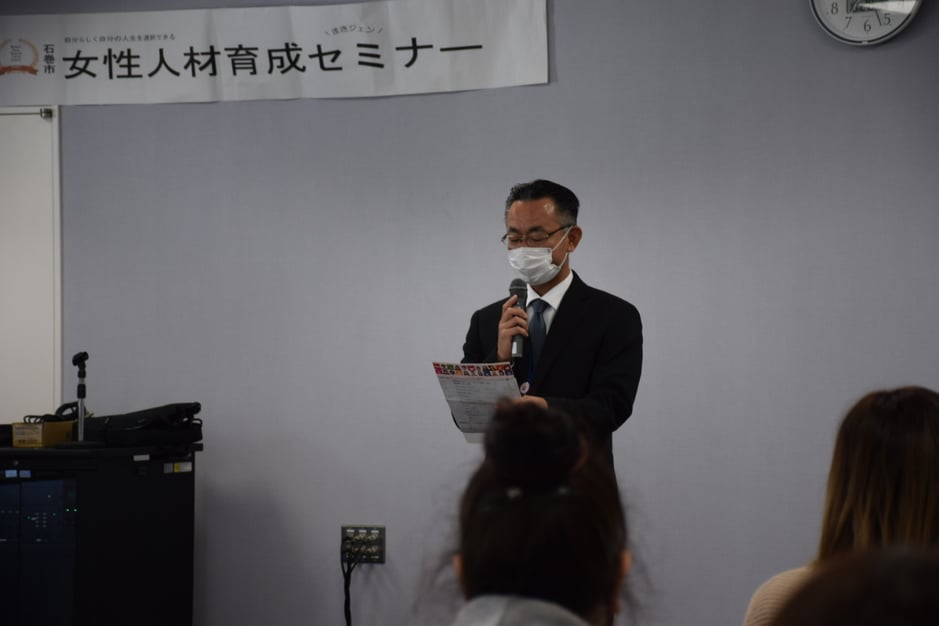 始めに石巻市復興政策部地域協働課 地域振興課長 平井 敦司様よりご挨拶を頂戴いたしました。