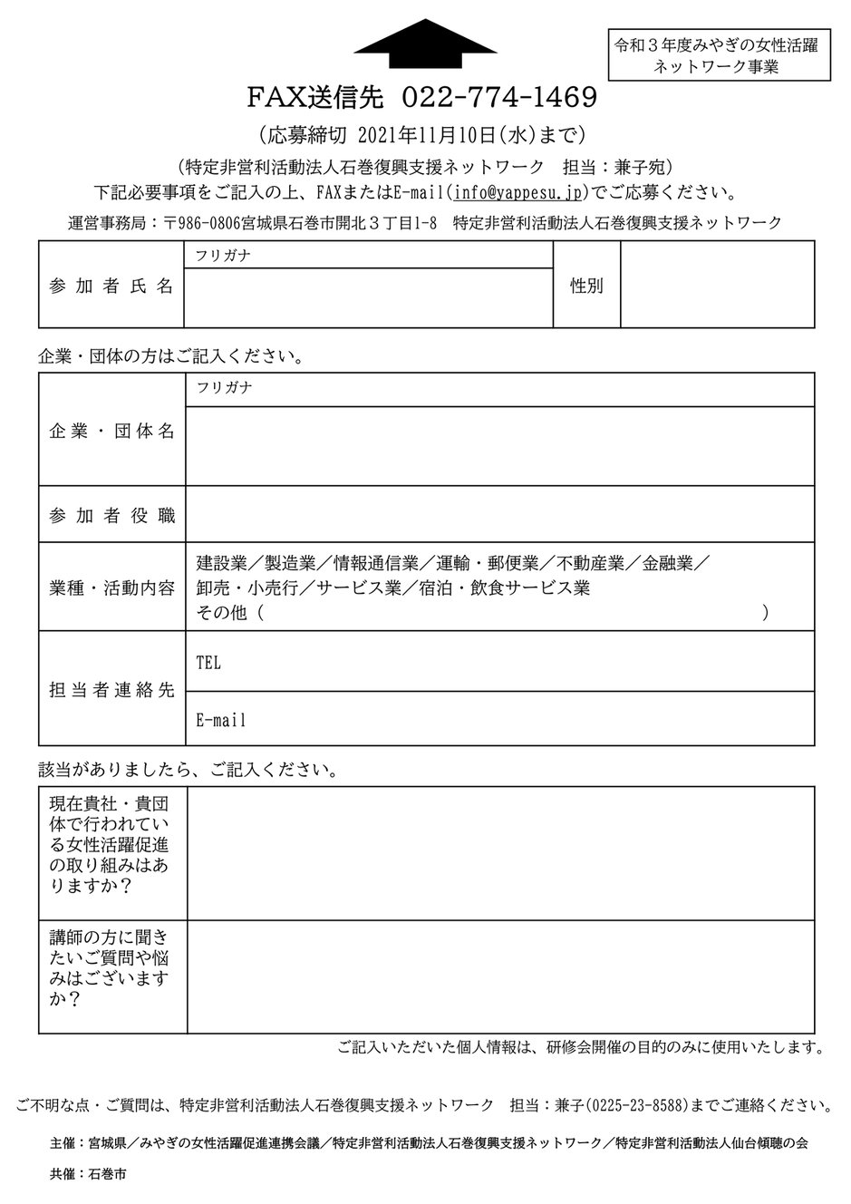 主 催:宮城県/みやぎの女性活躍促進連携会議/特定非営利活動法人石巻復興支援ネットワーク/特定非営利活動法人仙台傾聴の会
